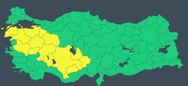 Bugün yurdun birçok bölgesinde beklenen kuvvetli sağanak ve fırtına nedeniyle birçok kentte sarı kodlu uyarı verildi. Sarı kod verilen 15 il şöyle: